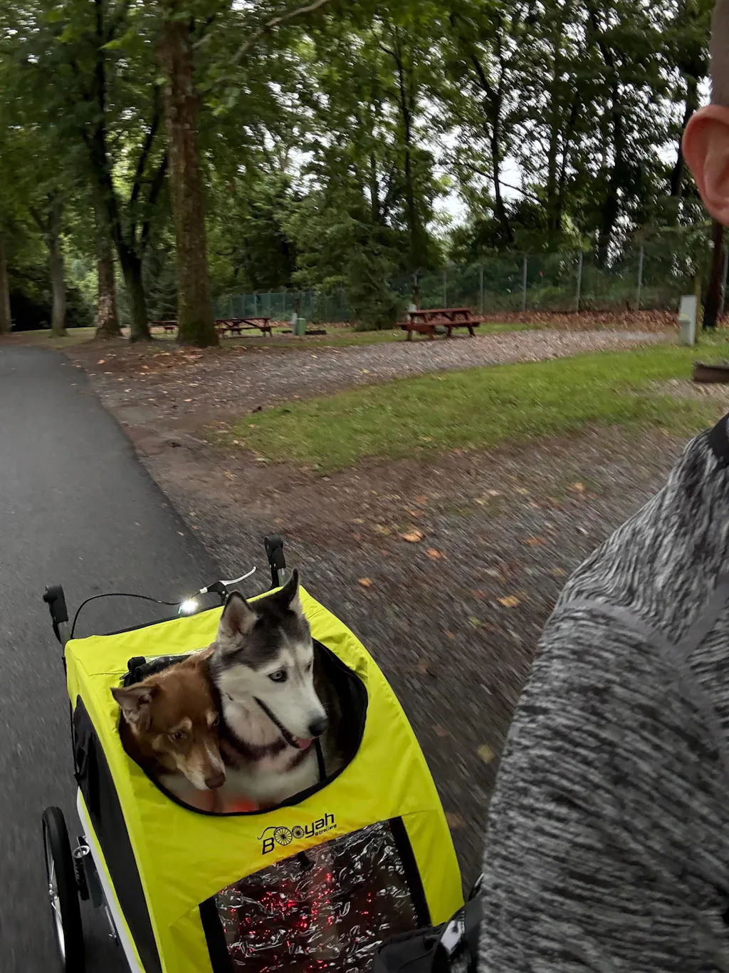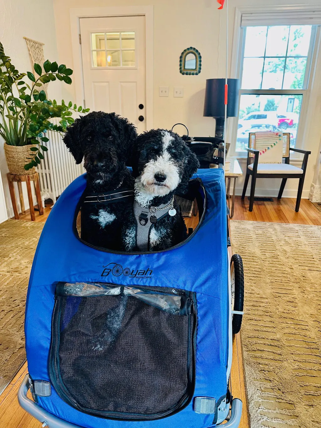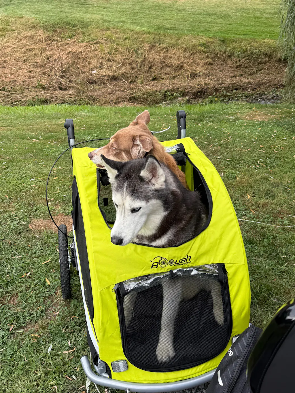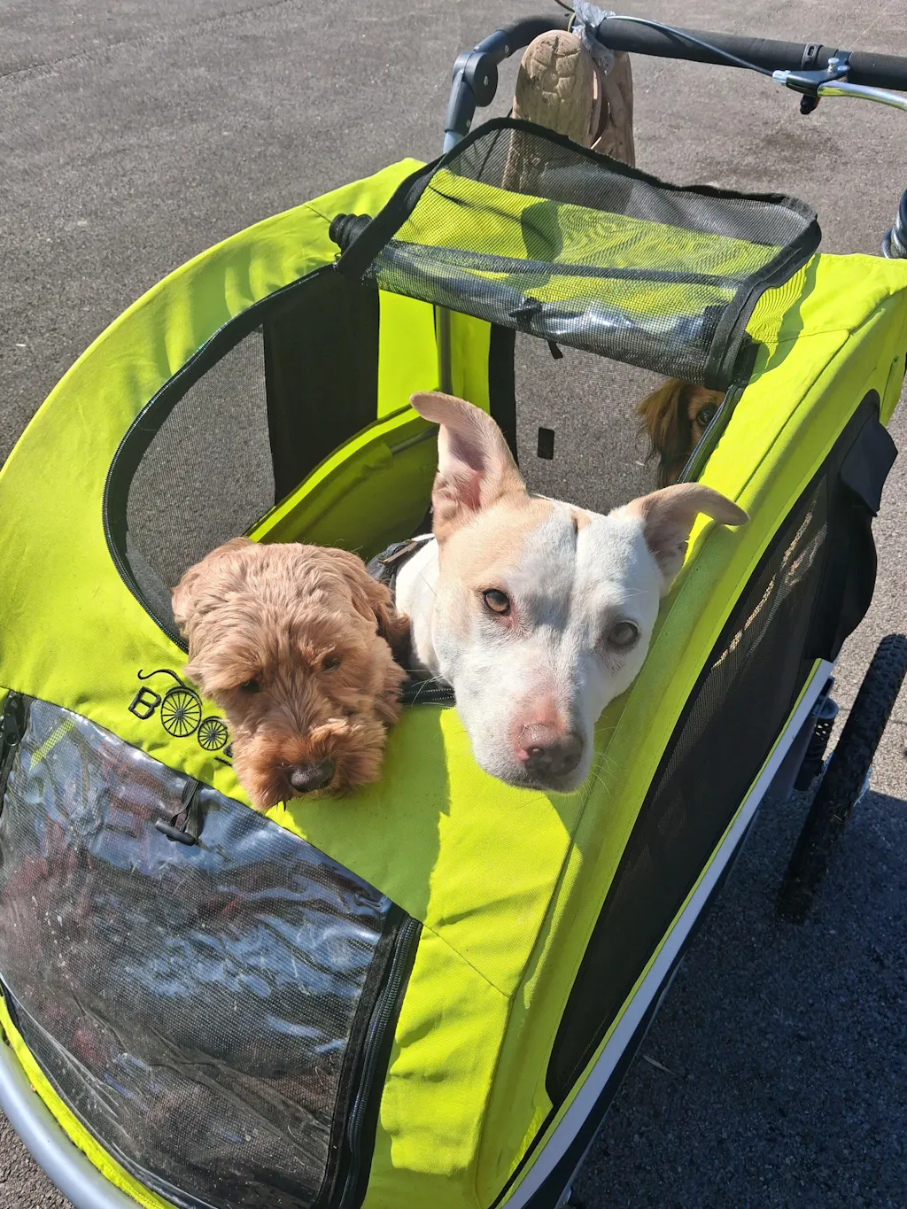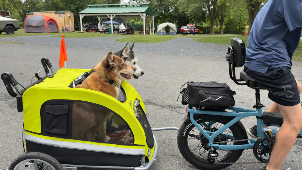 My partner and I are biking from south Indiana to Michigan, and our pups are nestled safely inside this booyah trailer! It's very comfy for them, they enjoy being able to see and sniff as we ride. As we've put over 130 miles into our journey, the only cons I can see so far are the tires, they are not very rugged. A thorn popped a tube the first week out. I have to be really careful and avoid all sticks or sharp looking debris in the road. So definitely bring a spare tube and a bike pump. Im still giving 5 stars because they sent me a replacement wheel when I discovered a bad bearing, they do have great customer service. And its a quality ride for my pups, even my anxious baby enjoys bike rides in her booyah trailer!